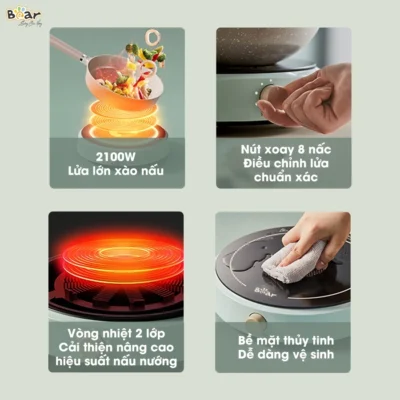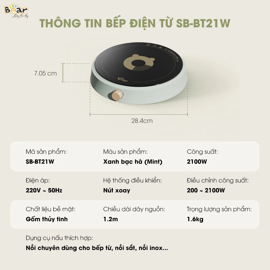 Bếp Điện Từ Bear Đa Năng 8 Mức Nhiệt Thích Hợp Đa Số Các Loại Nồi Mặt Bếp Làm Từ Gốm Thủy Tinh Cao Cấp SB-BT21W