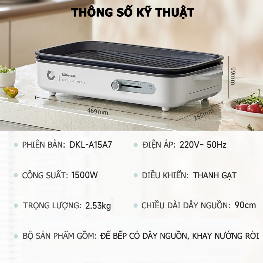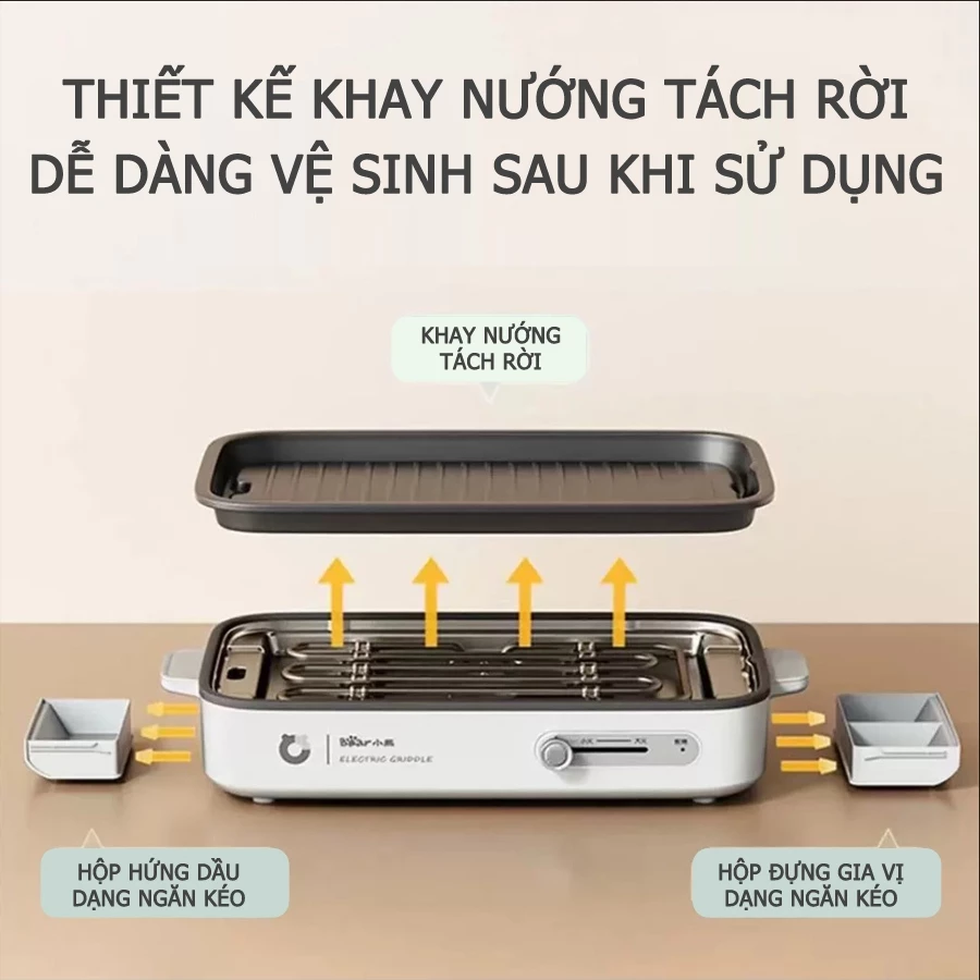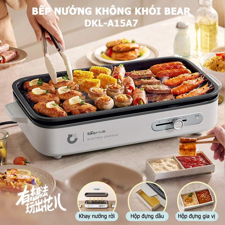 - Thiết Bị Điện - Bếp nướng không khói Bear DKL-A15A7 khay rời bếp phủ chống dính cao cấp – Bảo hành 6-18 tháng