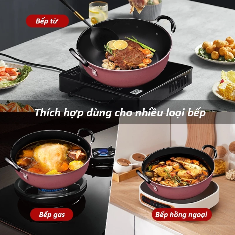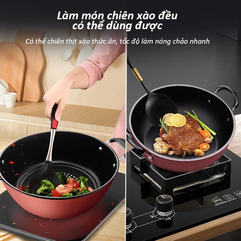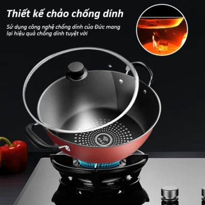 - Dụng Cụ Nấu Ăn - BỘ NỒI ĐỨC,Nồi Lẩu Chảo Từ Chống Dính ,Nắp Kính Tiện Lợi,Chảo chống dính 26-30cm dùng nấu canh, nấu súp, nấu lẩu