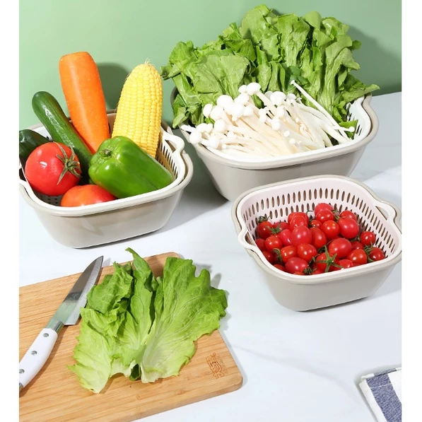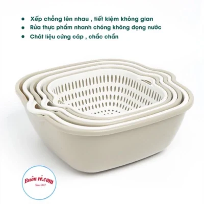 - Dụng Cụ Khác - Bộ Rổ Nhựa 6 Món Kèm Chậu Cao Cấp Rổ Đựng Rau Bộ Rổ 2 Lớp Vuông Hokori Việt Nhật – Việt Nhật Plastic HN